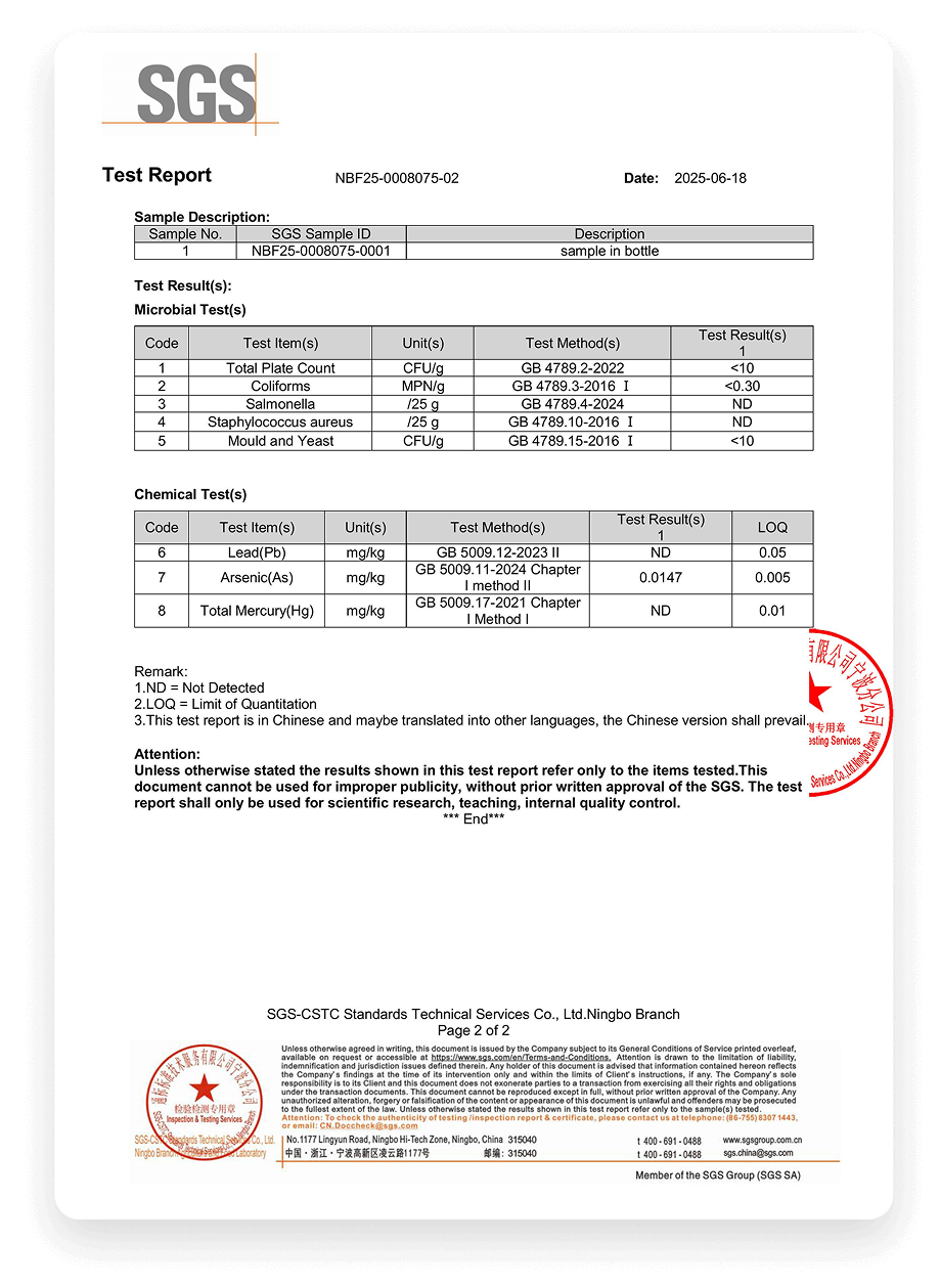 NMN 4-Month Large Barrel (Batch NMNF0115805) Testing Report