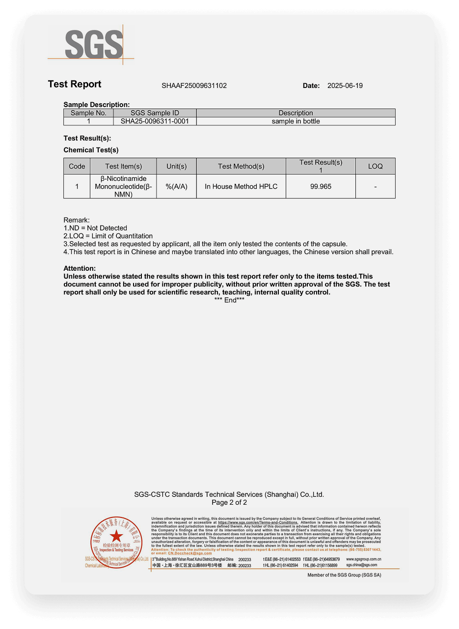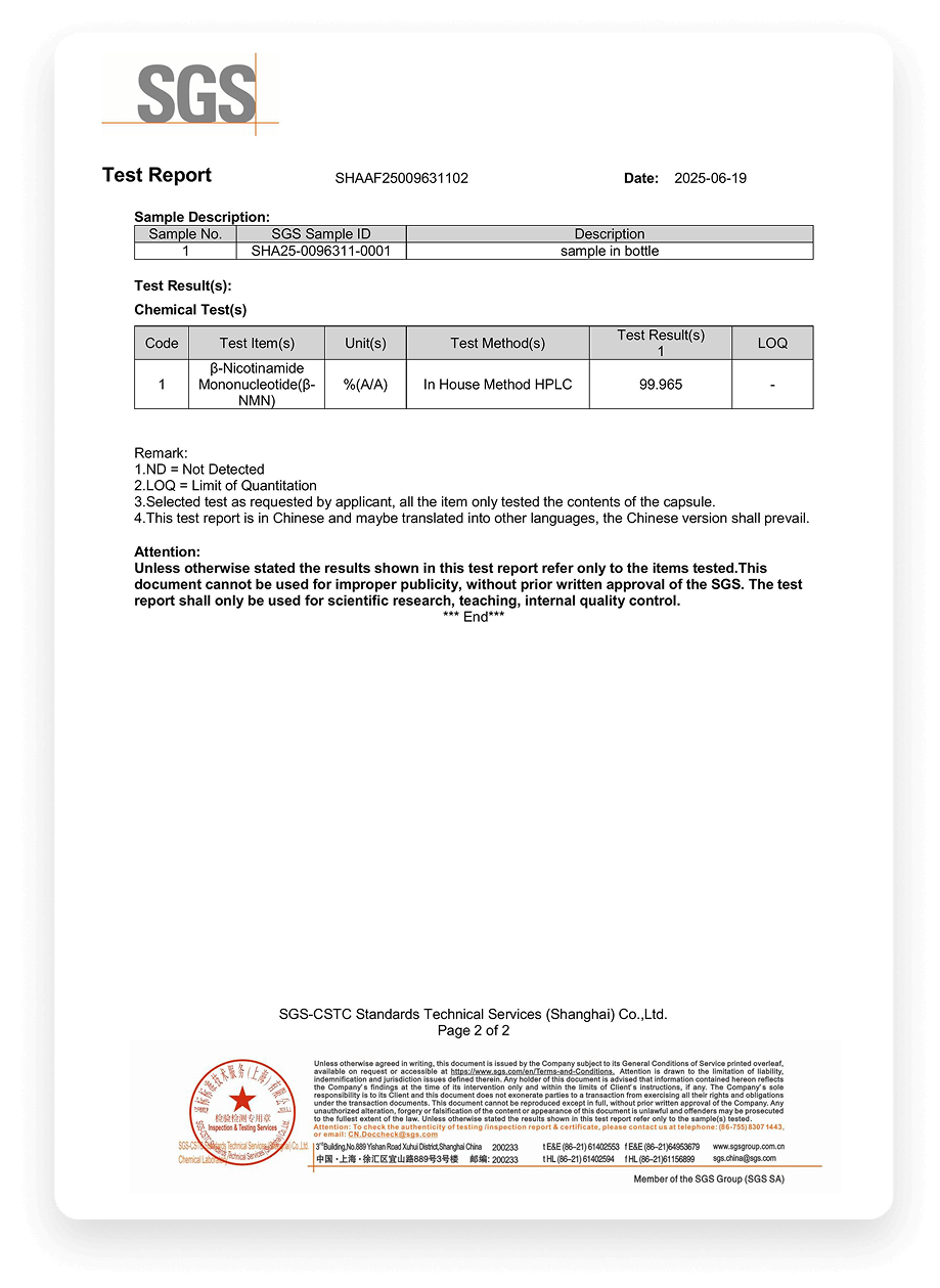 NMN 4-Month Large Barrel (Batch NMNF0115805) Testing Report
